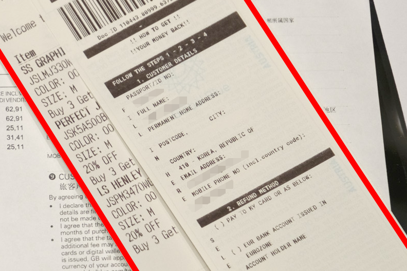 매장에서 쇼핑 후 받은 택스리펀 서류를 보면